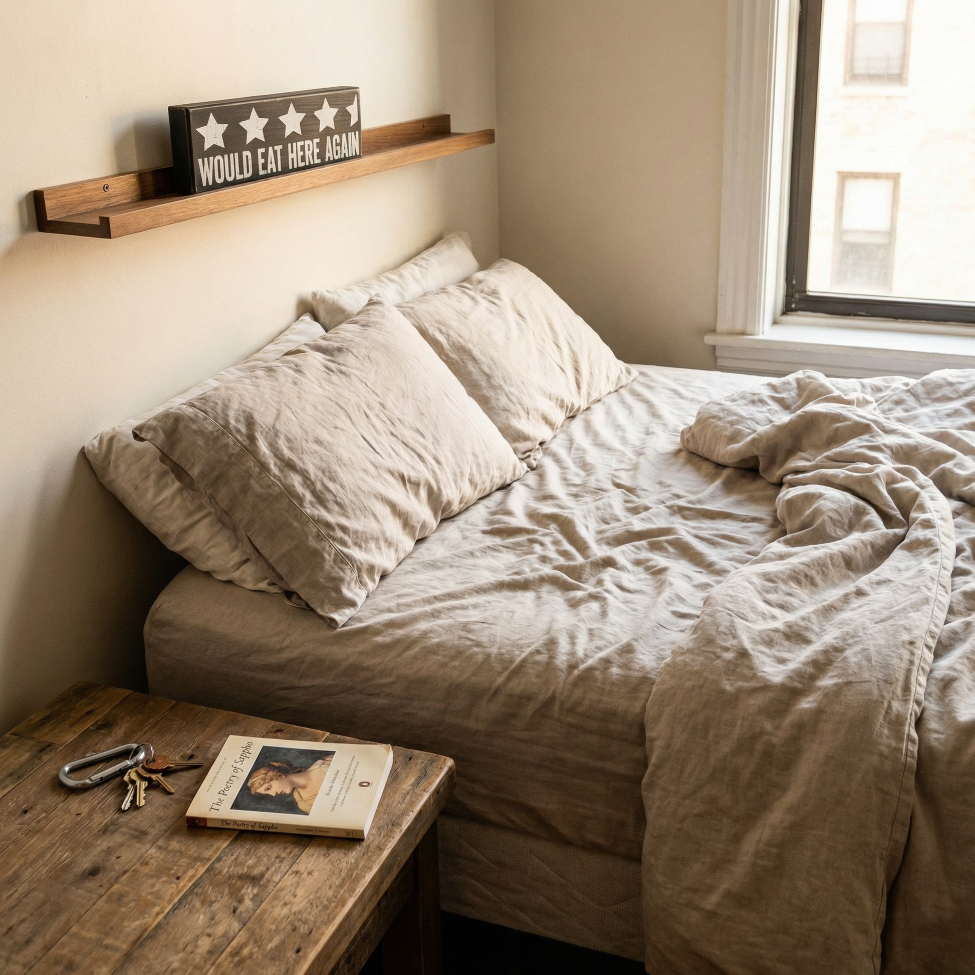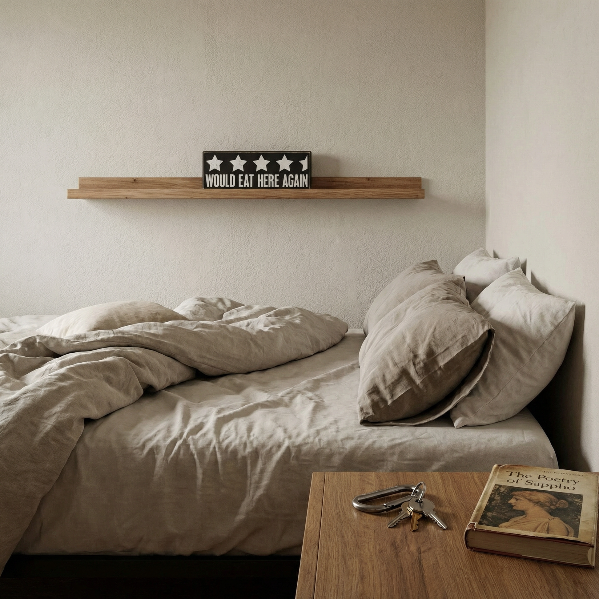 It's meant for the kitchen, although it's funnier over the bed.