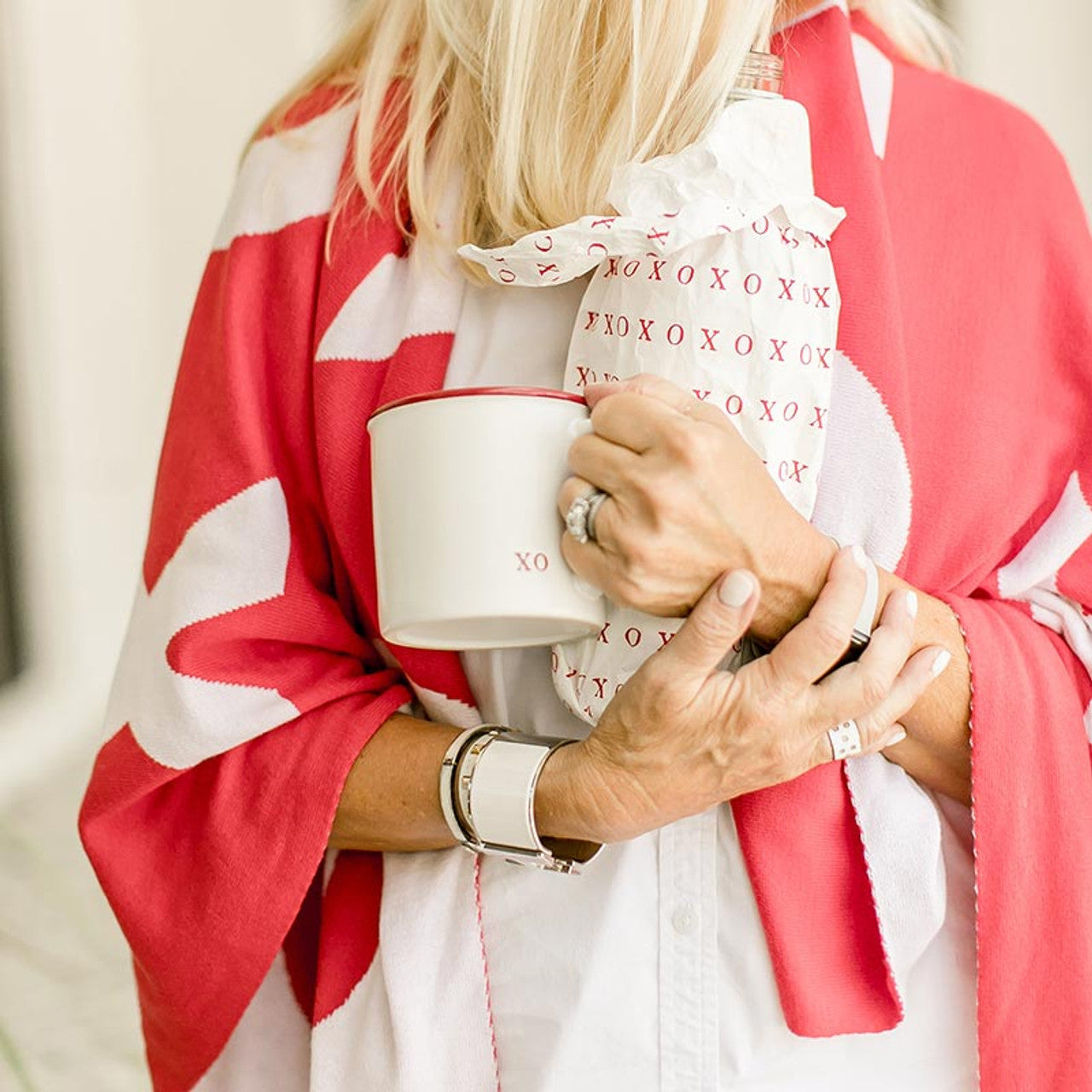 Holiday wine bottle gift bag. Festive in white with an XOXO print.