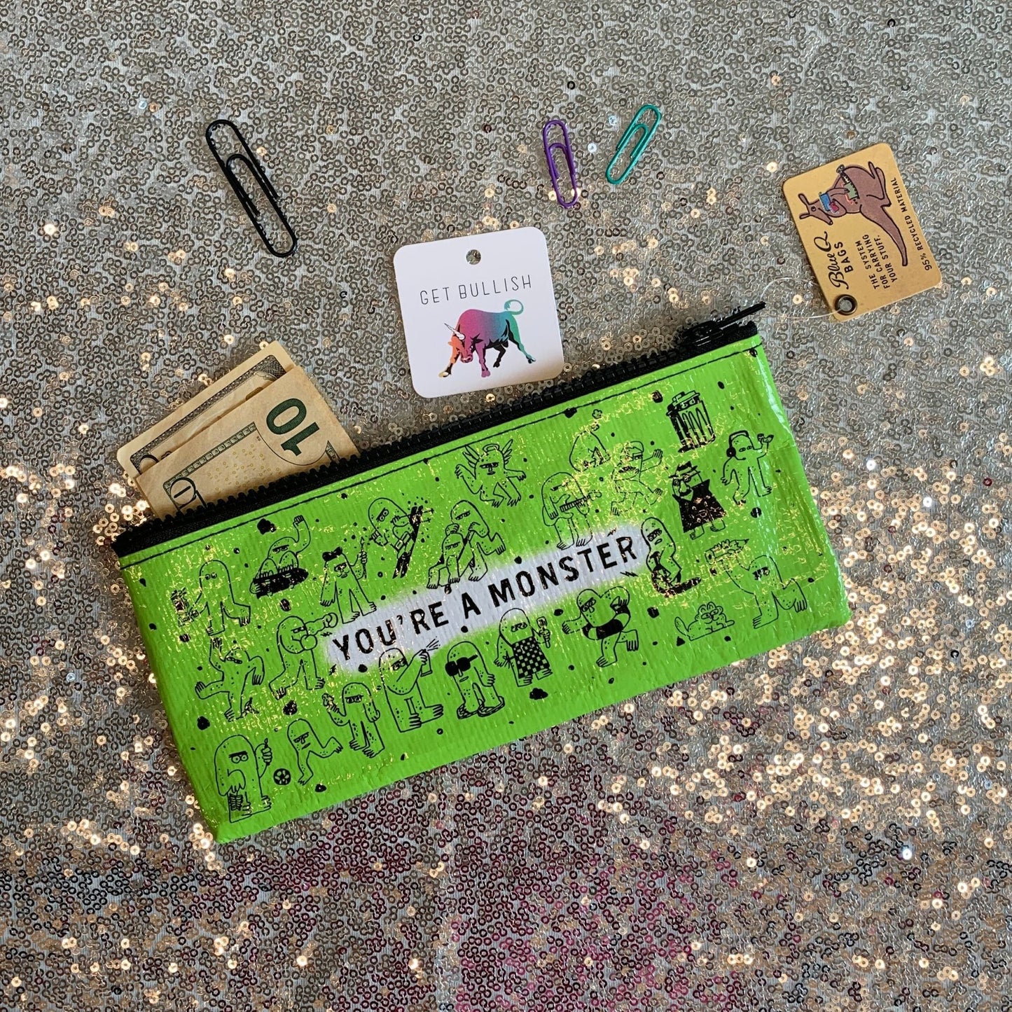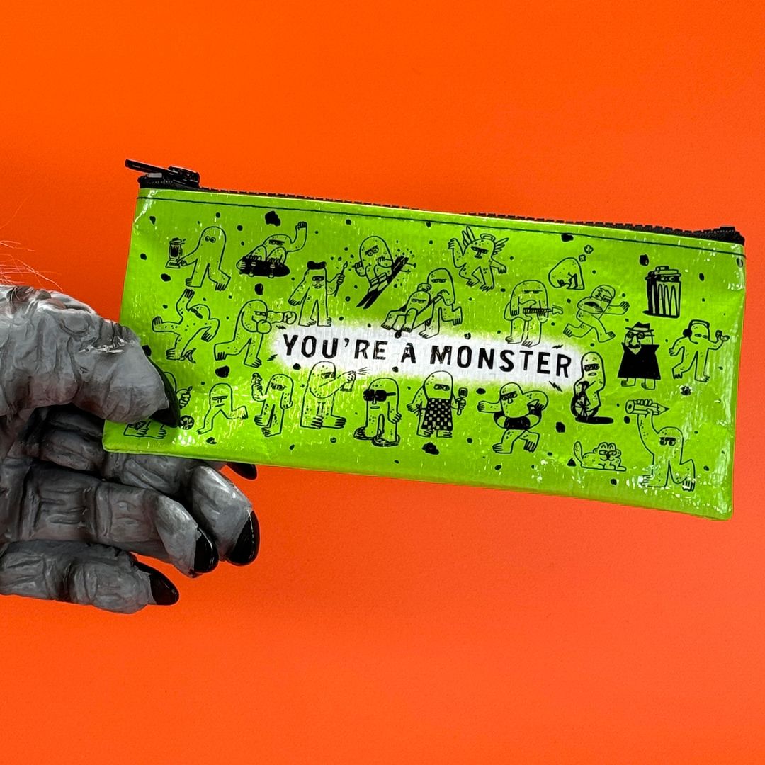 You're A Monster Pencil Case in Brat Green | 4.25" x 8.5" | BlueQ at GetBullish